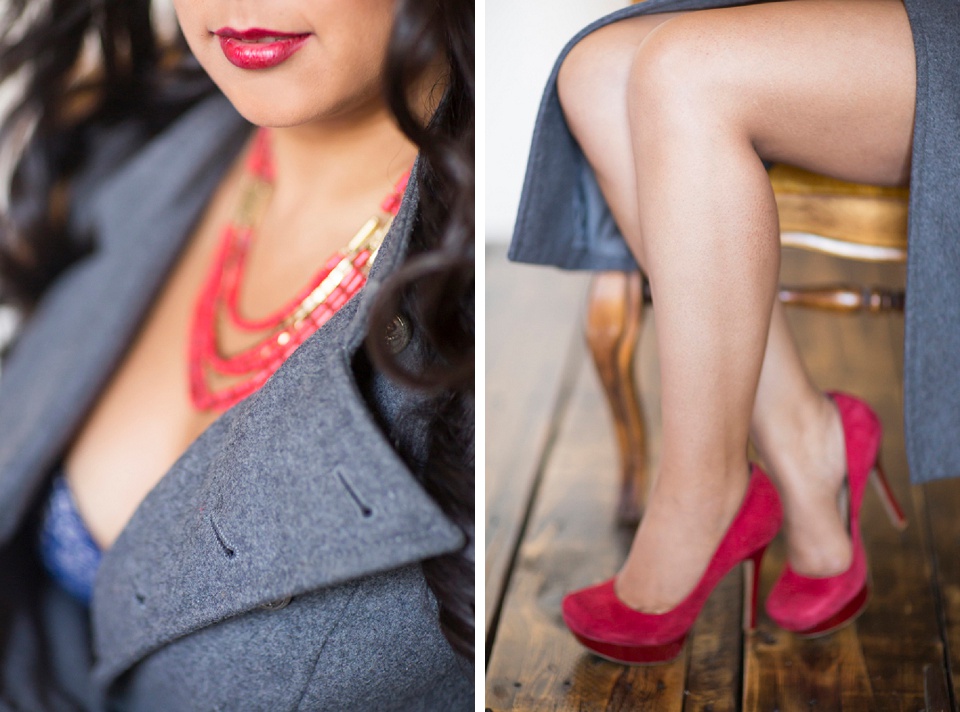 The team: Photography: Angie Capri Photography // Hair and Makeup: The Makeup Movement // Wardrobe Stylist: Angie Capri Photography // Custom Garters: La Gartier // Hair Accessories: Pink Pewter // Red Versatile Bliss Statement Necklace: Stella & Dot // Location: Angie Capri Photography Studio, Concord, CA